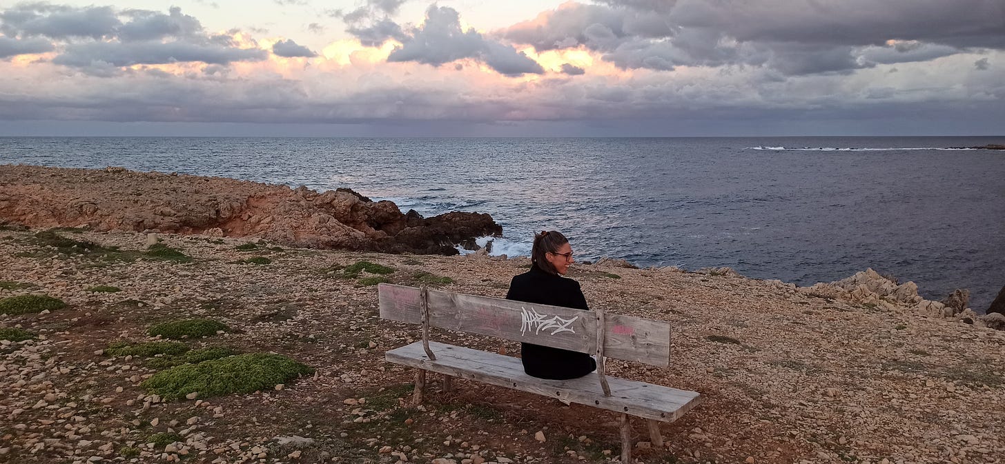 I'm fortunate to have my father living in a gorgeous place, only a 30-minute flight away. He's in Menorca, one of the beautiful Balearic Islands in Spain. It's such a peaceful and stunning spot, especially in the winter. For me, it's the perfect place to recharge both my energy and spirit.